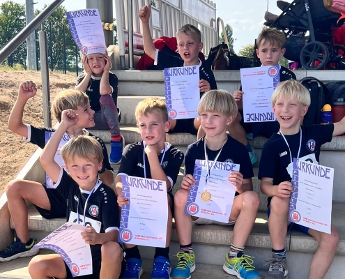 Die F-Jugend holte zum Ende der Saison 2025/26 den Sieg in der Liga der Jüngsten nach Angermund und freut sich dabei über ein denkbar knappes Ergebnis.