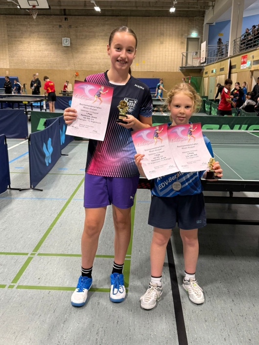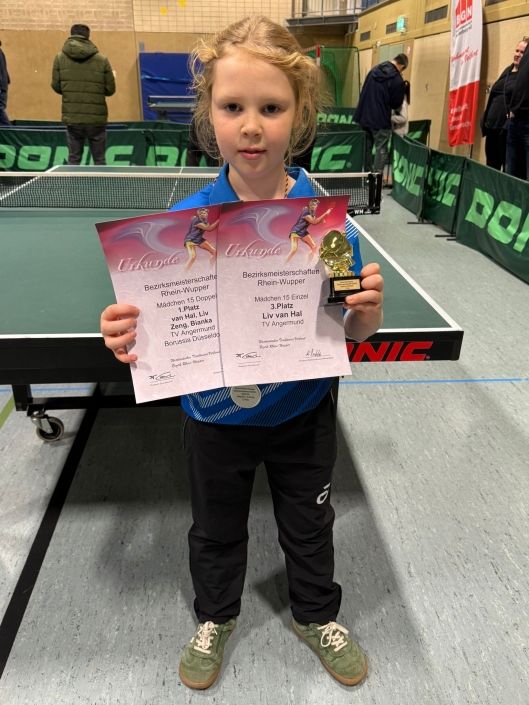 Bei den Mädchen war es einmal mehr Liv van Hal, die auch in diesem Jahr extrem stark für den TVA punktete. So schaffte die die talentierte Nachwuchsspielerin gleich viermal ganz nach oben: Jeweils aus Platz 1 als Bezirksmeisterin im Doppel in den Altersklassen U13 und U 15 und jeweils mit einem 3. Platz in den Einzelspielen der Altersklassen U13 und U15.